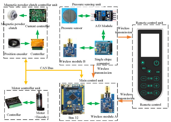 The electrical system design of the leg-press device is shown in Figure 3 and Figure 4. The main control system is based on the Stm32 microcomputer, and the communication system is based on Controller Area Network.