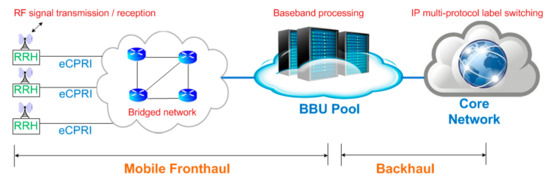 - Gomes, N.J.; Sehier, P.; Thomas, H.; Chanclou, P.; Li, B.; Munch, D.; Assimakopoulos, P.; Dixit, S.; Jungnickel, V. Boosting 5G through Ethernet: How evolved fronthaul can take next-generation mobile to the next level. IEEE Vehic. Technol. Magaz. 2018, 13, 74–84. [Google Scholar] [CrossRef]