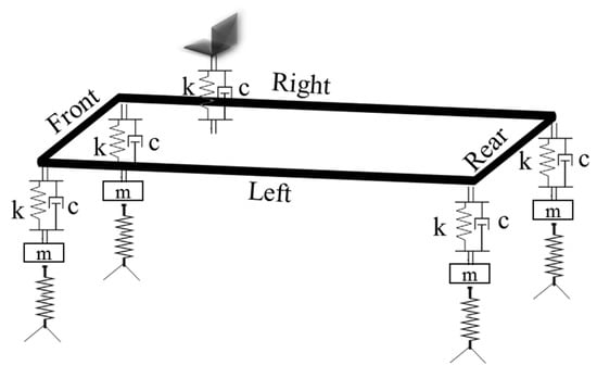 Schematic diagram of a two-layer multiple-degrees-of-freedom (multiple-DOF) seat suspension [53].