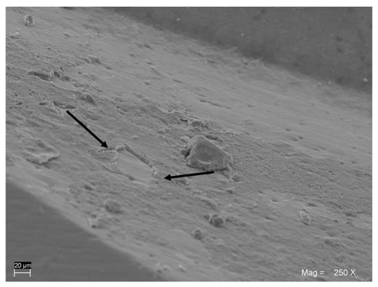 In order to evaluate changes in the surface topography, we used a scanning electron microscope (SEM, JSM-6480LV; Jeol, Tokyo, Japan), with a solid-state backscattered detector operated at a 20 kV accelerating voltage. Each drill was attached to an aluminum stub with sticky conductive carbon tape. Images were taken in both secondary and backscattered electrons. The drills were mounted on aluminum stubs and gold-coated in Emitech K550 (Emitech Ltd., Ashford, UK). Pictures were recorded for each specimen to characterize the surface and presence of corrosion area. The pictures were processed with ImageJ (ImageJ, U.S. National Institute of Health, Bethesda, MD, USA).