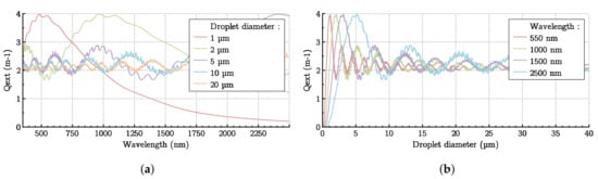 The extinction coefficient therefore depends on the wavelength but also on the DSD. To study the influence of fog particle size and wavelength on the extinction phenomenon, and with d the droplet diameter are plotted.