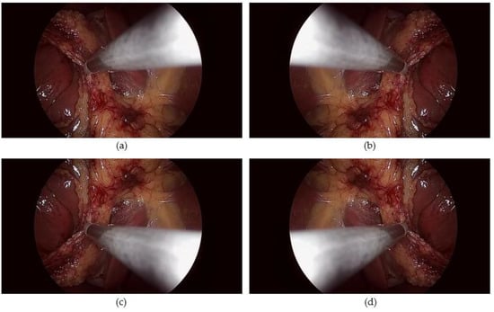 - Jo, K.; Choi, B.; Choi, S.; Moon, Y.; Choi, J. Automatic Detection of Hemorrhage and Surgical Instrument in Laparoscopic Surgery Image. In Proceedings of the 38th Annual International Conference of the IEEE Engineering in Medicine and Biology Society (EMBC), Orlando, FL, USA, 16–20 August 2016; pp. 1260–1263. [Google Scholar]