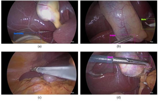 According to the World Health Organization (WHO), complications in inpatient surgical operations occur for at most 25% of the patients, and at least half of the cases in which surgery led to harm or damage are considered preventable []. This means that improvement of surgical performance can lead to better outcomes of surgical operations. Surgical performance can be improved through sophisticated remote manipulation of the robot [,,], but surgical feedback also has a positive effect on surgical performance []. While manual evaluation methods such as the objective structured assessment of technical skills (OSATS), and the global operative assessment of laparoscopic skills (GOALS) can assess the surgical skills and are beneficial in terms of their improvements, it is both time and labor consuming, because surgeries could last multiple hours [,]. Manual assessment is subjective to observer bias and can lead to subjective outcomes []. Detection of surgical instruments is one of the indicators used for the analysis of surgical operations and it can be useful for the effective and objective analysis of surgery []. This also helps prevent surgical tool collision by informing the operator during the procedure [].