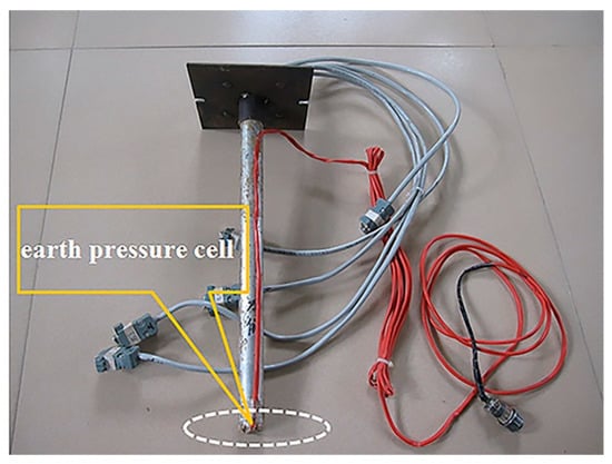 The aluminum pipe and steel pipe are bonded by epoxy resin, regardless of the friction between them. Finally, sandpaper will be used to polish the outer surface of the model pile, so that their bearing characteristics are closer to the actual pile [33]. Tip resistance of the pile can be obtained by earth pressure cell, which is installed at the bottom of the pile (see Figure 4).