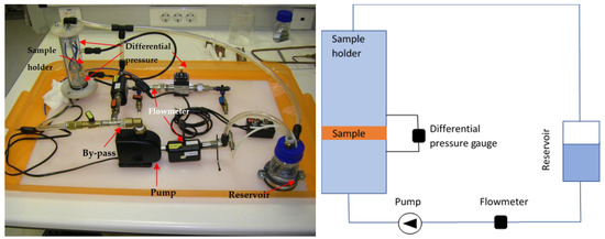 24] that are not always present in nature. Darcy’s law is a simple proportional relationship between the instantaneous flow rate through a porous medium of permeability (κ), the dynamic viscosity of the fluid, and the pressure drop over a given distance in a homogeneously permeable medium. In this work, it is used to obtain the permeability of different porous media working with the same fluid (methanol) by measuring pressure drop and flow rate through them. In the above-mentioned application, the pressure drop in the wick must be less than or equal to 100 Pa to arrive at the proper flow rate into the LHP [
