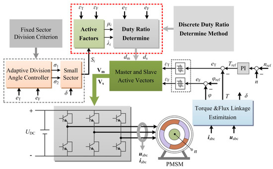 - Niu, F.; Li, K.; Wang, Y. Direct torque control for permanent magnet synchronous machines based on duty ratio modulation. IEEE Trans. Ind. Electron. 2015, 62, 6160–6170. [Google Scholar] [CrossRef]