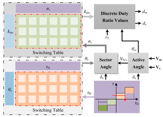 - Ren, Y.; Zhu, Z.Q.; Liu, J. Direct torque control of permanent-magnet synchronous machine drives with a simple duty ratio regulator. IEEE Trans. Ind. Electron. 2014, 61, 5249–5258. [Google Scholar] [CrossRef]