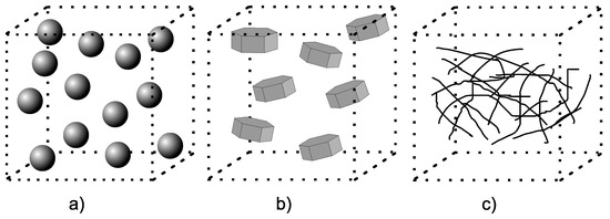 Different fillers used in matrices (a) dispersed particles; (b) exfoliated layered nanosilicates; (c) nonwoven nanofibres.