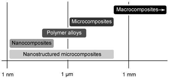 Classifications of composite materials depending on the filler size (redrawn and adapted from: [16,27]).