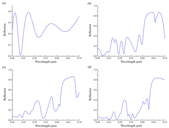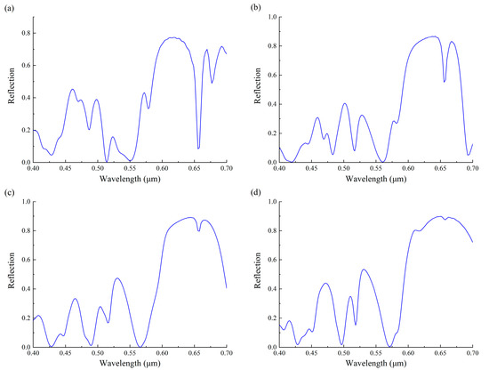 The reflection spectra of different Hd. (a) The reflection spectra with Hd = 30 nm. (b) The reflection spectra with Hd = 60 nm. (c) The reflection spectra with Hd = 90 nm. (d) The reflection spectra with Hd = 120 nm.