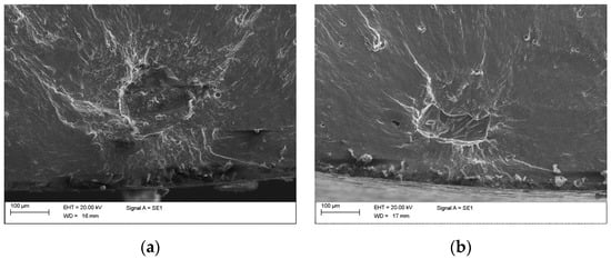 In the following analysis, the stress amplitude close to the defect location, referred to as the local stress amplitude , is considered in the following analysis, according to [20,21,27]. was assessed through a finite element analysis (FEA) by considering the location of initial defects within the risk volume. The location of defects in the radial direction was measured through digital processing of the fracture surface images obtained with the optical microscope and the scanning electron microscope (SEM). The location of the defect along the longitudinal direction is measured by using a digital caliber with a nominal resolution of 0.01 mm.