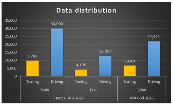 This data distribution allows for training the model with several different images, and validating it in a complete unseen scenario, looking for the generalization in the behavior of the model to guarantee good performance with real data on any new unseen vehicle or new unseen subject [32]. Figure 4 shows the proposed data set distribution for the training and testing, as well as the independent blind test.
