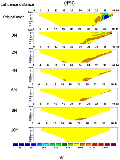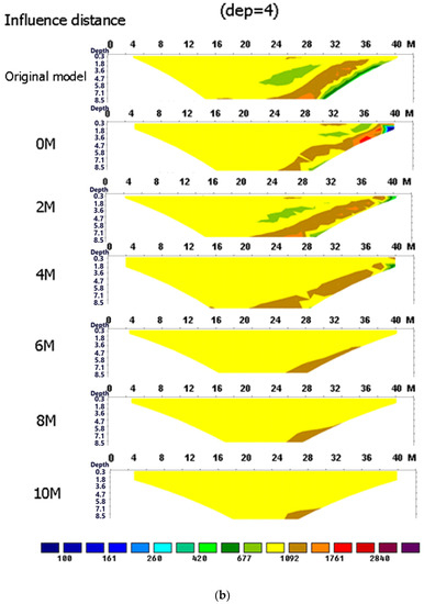 The influence situation of the boundary effect with different electrode spacing. (a) electrode spacing 2 m; (b) electrode spacing 4 m.