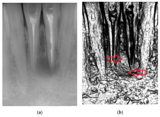 The importance of assessment of periapical lesions in clinical decision-making is well known. Osteolytic lesions form as periapical lesions in response to inflammatory infiltrates and are often associated with morbidity of the root canal pulp [1,2,3,4]. Recognition of osteolytic changes provides important information about the viability of a tooth, which influences decision-making during the treatment process. The relevant anatomical structures themselves are often small, which hinders acquisition of adequate anatomical outline. Moreover, the relative complexity of the region is increased by the presence of superimposing structures that result in “anatomical noise”. All of these factors contribute to the difficulty in recognition of bone resorption on radiographic images, which impedes the accuracy of diagnosis using digital intraoral radiography (DIR) images and may result in periapical lesions going undetected or detection is inadequate [5,6,7].