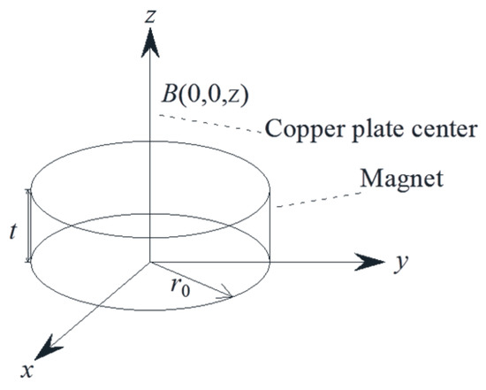 Assume that the center of copper plate is located at the point (0, 0, z), and a uniform magnetic field is assumed to be across the copper plate. Then the damping coefficient of the eddy current can be estimated by [35]