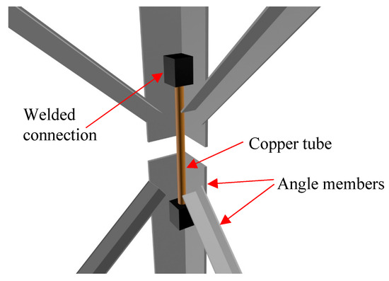 Detailed connection of copper tube and angle members.