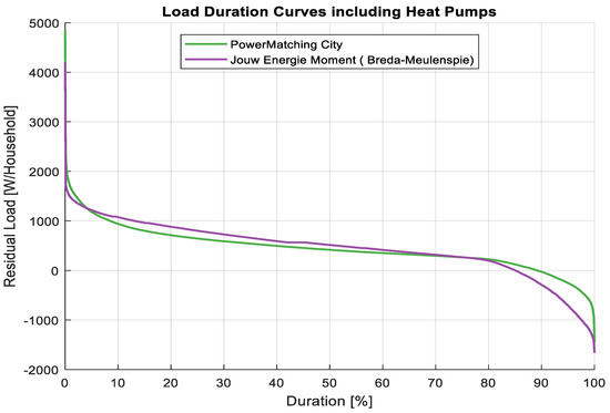 Load duration curves of the “PowerMatching City” project and “Jouw Energie Moment” project—the Meulenspie group (all households are equipped with heat pumps).