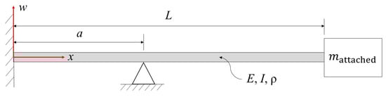 The transverse vibrations of a slender clamped-pinned-free beam with a mass at free end of interest is shown in Figure 1. The governing equation for the beam using Euler-Bernoulli’s beam theory [13] can be written: