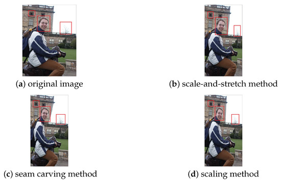 - Avidan, S.; Shamir, A. Seam carving for content-aware resizing. ACM Trans. Graphics 2007, 26, 10. [Google Scholar] [CrossRef]