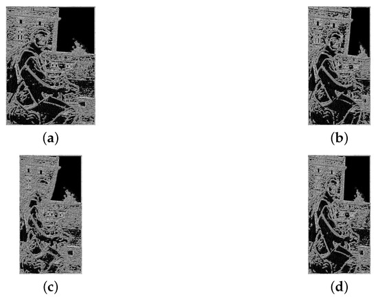Residual LTM (local Tchebichef moments) diagram obtained by different re-targeting methods: (a–d) correspond to the residual LTM diagram of Figure 1a–d, respectively.