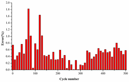 Average error during charge estimation of Li-ion batteries’ charge at different cycles using cycle number higher than 250.