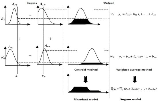 The Sugeno FIS accepts a premise as a linguistic variable; however, its final part is a function, which can be zero (constant) or first order. The formula used by the Sugeno FIS for the weighted average defuzzification method is as follows []: