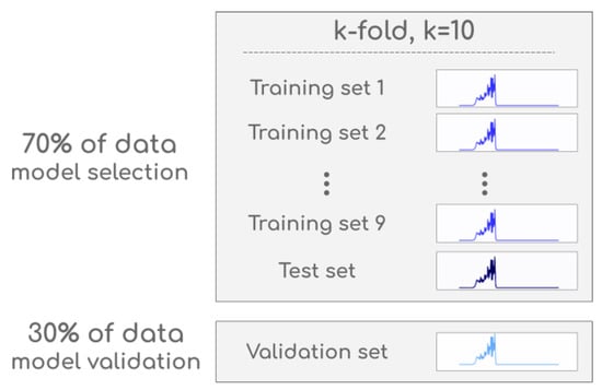 To obtain reliable results regarding the implementation of the ANN model, the input dataset was split into train/test (70%) and external validation (30%) subsets. In the first subset–the train/test split–a 10-fold cross validation scheme was performed. The ANN model was trained using the parameters and configuration determined in the model validation, considering the MAE and the Clarke grid error analysis as the evaluation metrics. For details of the latter, please refer to Section 2.5.1.