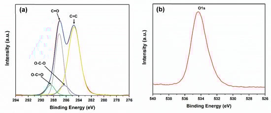 (a) C1s and (b) O1s XPS spectra of GO nanosheets.