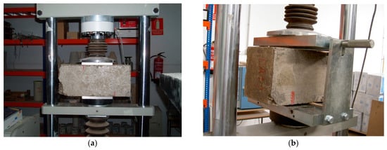 The applied load was transmitted by means of a plate between the specimen and the rollers over it. An increasing tension of 0.04 MPa was selected in the slowest way of the standard range of 0.04–0.06 MPa/s [].