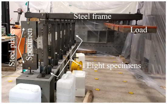 Photo of the test setup of TRM coupons subjected to sustained load.