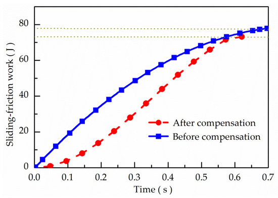 Comparison of sliding-friction work before and after compensation.