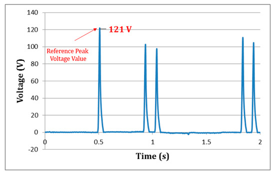 The peak voltage outputs from the installed P-WIMs corresponding to the example trailer truck.