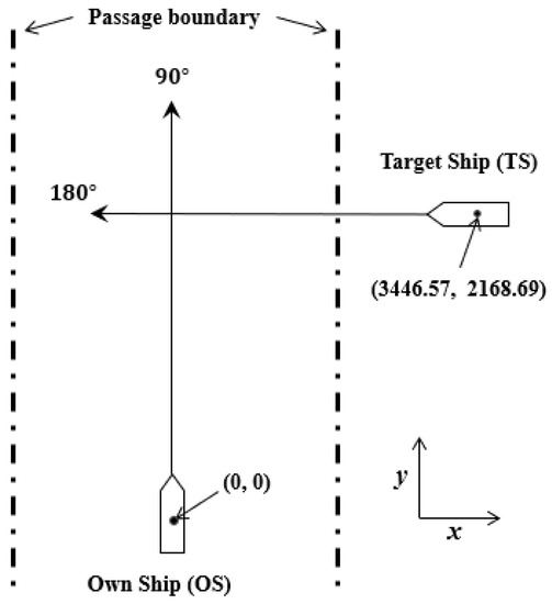 The calculation of the distance of the CPA requires complex procedures and formulas, which have already been reported in various references [33,34]. Using the formulas in [35], was calculated using the following procedure: