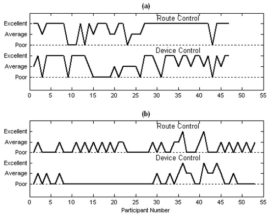 For sequence data creation, the four behavior features mentioned above were used. The performance levels of the device control and the route control were calculated as