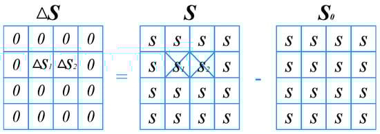 Suppose that there is no corrosion on the monitored plate-like material before its structure is investigated. Let the system shown in Figure 1 work on the plate-like material. In this way, one can obtain the measurements denoted as . Obviously, these measurements will not include any corrosion on the inspected material. Certainly, one can also obtain these measurements via a reference plate, which is exactly the same as the monitored plate-like material but without any corrosion on it. By inserting into Equation (4), one has