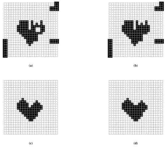 where M is a mask image, f is a structural element, and represents the origin point in filter f. represents the results of M dilated by filter f. The effect of the close operation is shown as Figure 6d. Here, it can be observed that the internal noise is removed.