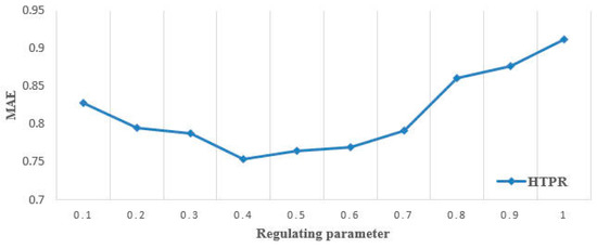 Figure 9 shows the effect of the regulating parameter on rating prediction. In view of above analyses, the number of clusters and nearest neighbors was respectively 40 and 30 for item clustering, while for user clustering, the number was 50 and 30 respectively, and the similarity threshold θ was 0.7. We varied the regulating parameter ρ from 0 to 1 with a step of 0.1. It can be found in Figure 10 that MAE achieved the lowest value when ρ = 0.4. Accordingly, the regulating parameter can be set to 0.4 in the following experiments. Note that we obtained the same conclusion if we only changed the number of nearest neighbors for user clustering to 40.