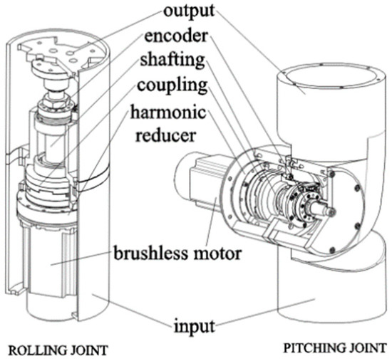 Based on Equation (3) and the AACMM structure, design, and component selection were carried out by calculating each step from the probe to the base in a preliminary study [31]. Table 1 lists the design parameters, and load moment for each joint, and minimum moment required for the motor and reducer. Table 2 lists the parameters of the brushless motor and reducer.