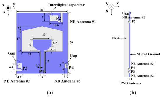 - Pahadsingh, S.; Sahu, S. A two port UWB-dual narrowband antenna for cognitive radios. Microw. Opt. Technol. Lett. 2019, 58, 1973–1978. [Google Scholar] [CrossRef]