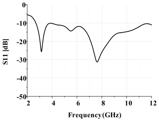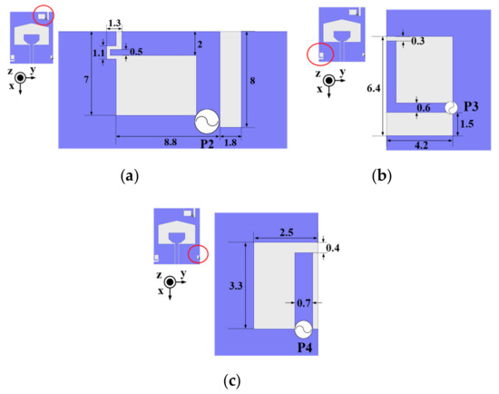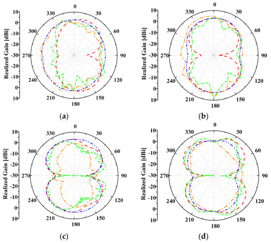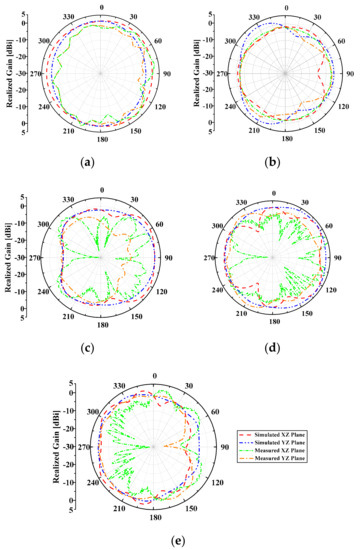 - Malekpoor, H.; Hamidkhani, M. Compact multi-band stacked circular patch antenna for wideband applications with enhanced gain. Electromagnetics 2019, 39, 241–253. [Google Scholar] [CrossRef]