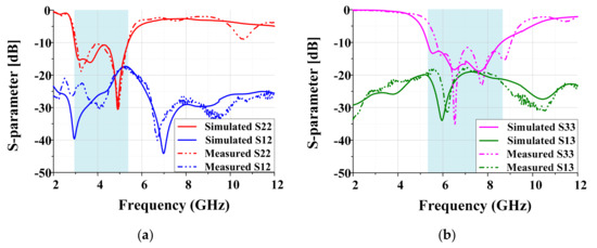 | Frequency | UWB Antenna Simulated/Measured | NB Antenna #1 Simulated/Measured | NB Antenna #2 Simulated/Measured | NB Antenna #3 Simulated/Measured |