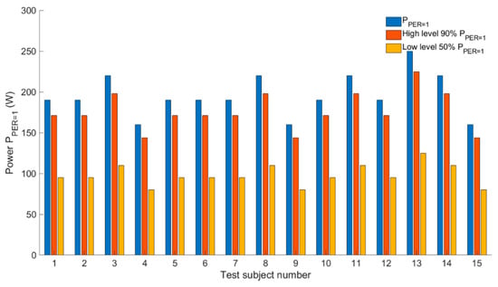 Figure 6 shows the resulting value for each test subject and the corresponding low and high levels of power. The corresponding low (= 50% of ) and high ( = 90% of ) levels for each test subject were used in the screening experiments.