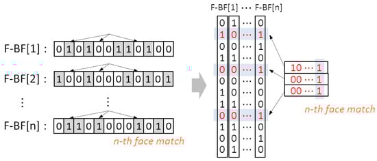 is the memory requirement for storing the signature of a name prefix. Note that output faces are represented by a fixed-length vector, of which the number of bits is equal to the number of output faces. Although an FIB table also keeps the ranks of possible faces, the memory requirement for ranking is ignored for simplicity.