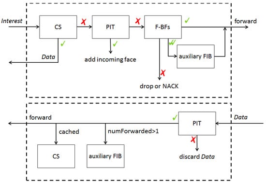 Interest packets in these schemes may cause in-network caches to store unnecessary contents, thus degrading the cache performance. The degraded in-network cache performance can generate more cache misses and lead to longer packet delivery paths.