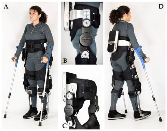 - Baunsgaard, C.B.; Nissen, U.V.; Brust, A.K.; Frotzler, A.; Ribeill, C.; Kalke, Y.-B.; León, N.; Gómez, B.; Samuelsson, K.; Antepohl, W. Gait training after spinal cord injury: Safety, feasibility and gait function following 8 weeks of training with the exoskeletons from Ekso Bionics. Spinal Cord 2018, 56, 106. [Google Scholar] [CrossRef]