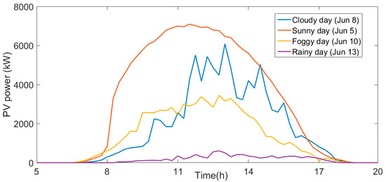 Photovoltaic system power output under different weather conditions.