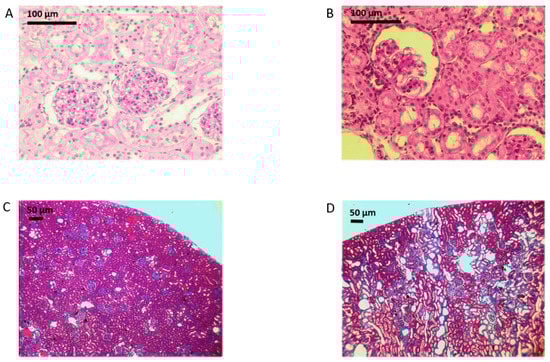To confirm the presence of disease, Masson’s Trichrome staining was used to visualize the pattern of collagen deposition, typically tubulointerstitial. The collagen deposition was also semi-quantified (% image area) by a blind observer using Bioquant Image Analysis (Life Science, Bioquant, Nashville, TN, USA, 2012). Glomerulosclerosis was visualized using periodic acid Schiff staining.