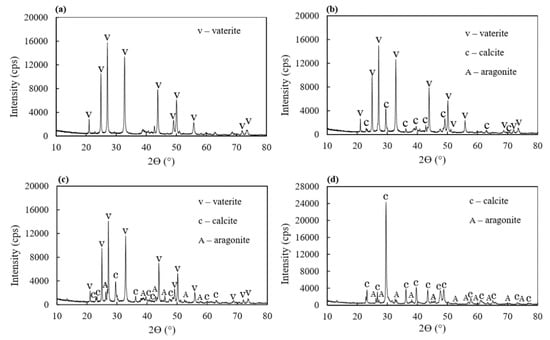X-ray diffractometer patterns of the powdered precipitates from Section 2.3 were analyzed using an X-ray generator (MiniFlex™, Rigaku Co., Ltd., Tokyo, Japan). The analysis was carried out at room temperature using the XRD machine with CuKa radiation at a rate of 6.5° 2θ/min and a step size of 0.02° 2θ ranging from 10 to 80° 2θ. Qualitative mineralogy of the samples was determined with the standard interpretation procedures of XRD using Match! software for phase identification from powder diffraction.