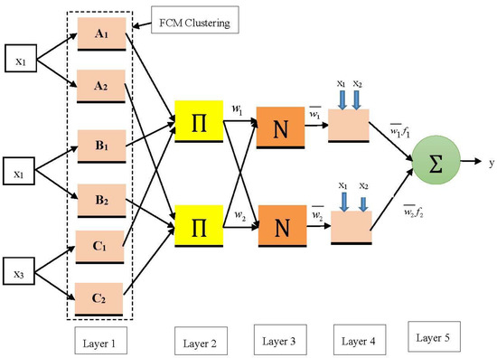 Configuration of the adaptive neuro-fuzzy inference system (ANFIS) [32].