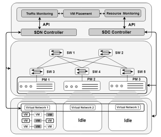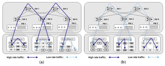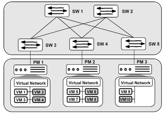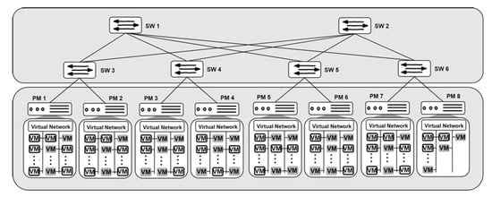 - Meng, X.; Pappas, V.; Zhang, L. Improving the scalability of data center networks with traffic-aware virtual machine placement. In Proceedings of the IEEE INFOCOM, San Diego, CA, USA, 14–19 March 2010; pp. 1–9. [Google Scholar]